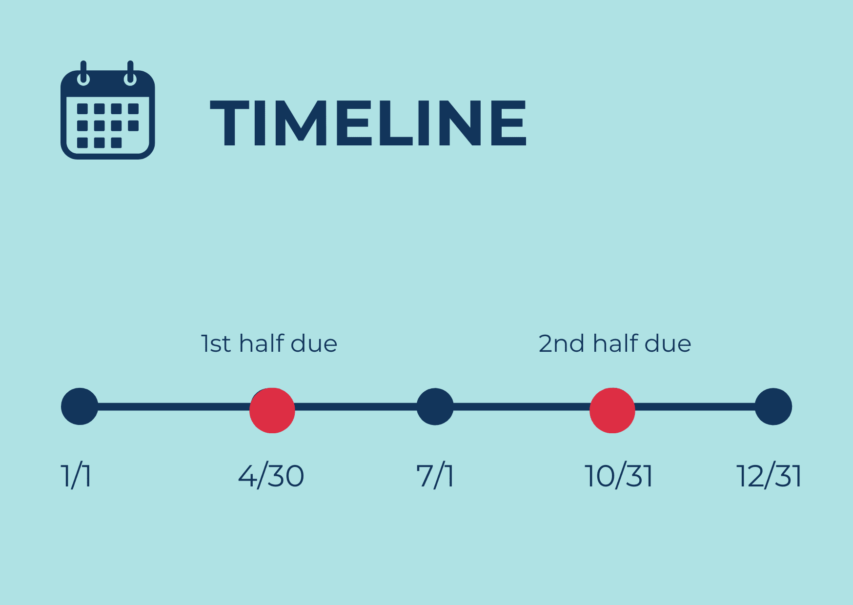 Keep these dates in mind to stay on top of your property tax responsibilities: